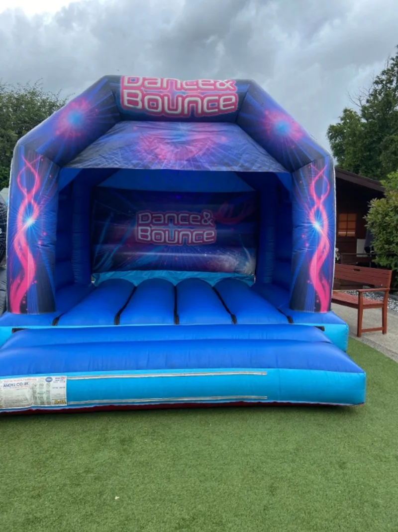 Dance & Bounce Castle includes Bluetooth speaker and light with castle hire.